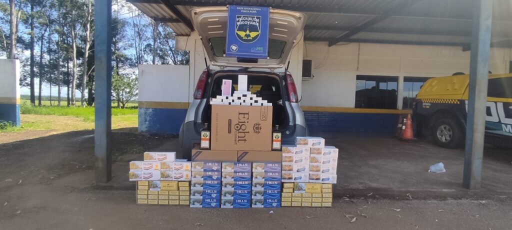 Ponta Porã News – Notícias de Ponta Porã e Pedro Juan Caballero Policiais da PMR (Polícia Militar Rodoviária) apreenderam mercadorias de origem estrangeira durante fiscalização na rodovia MS-164, em Ponta Porã, na manhã desta terça-feira (7/4). A abordagem ocorreu no quilômetro 49, quando a equipe interceptou um veículo Fiat Uno, ocupado por duas mulheres. Durante vistoria no carro, foram localizados aparelhos celulares, cigarros e bebidas de origem […] (Polícia Rodoviária apreende celulares e cigarros e causa prejuízo de R$ 112 mil ao crime)