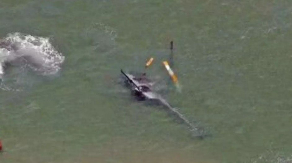 Helicóptero faz pouso de emergência e afunda no mar no Rio de Janeiro